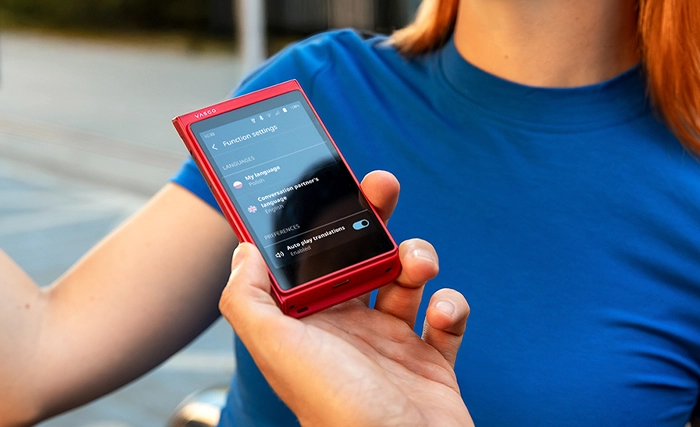 O único tradutor instantâneo com tecnologia de clonagem de voz, tradução de chamadas telefónicas e modo mãos-livres.