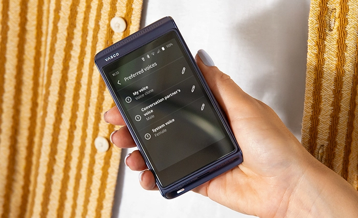 Para quem gosta de ter opções. Além do revolucionário recurso Vasco My Voice, também pode escolher uma voz masculina ou feminina clássica para ler as traduções. Isso permite que adapte o tom a qualquer situação. Prefere um tom formal para reuniões de negócios ou algo mais caloroso para conversas em família? O seu tradutor, as suas regras.